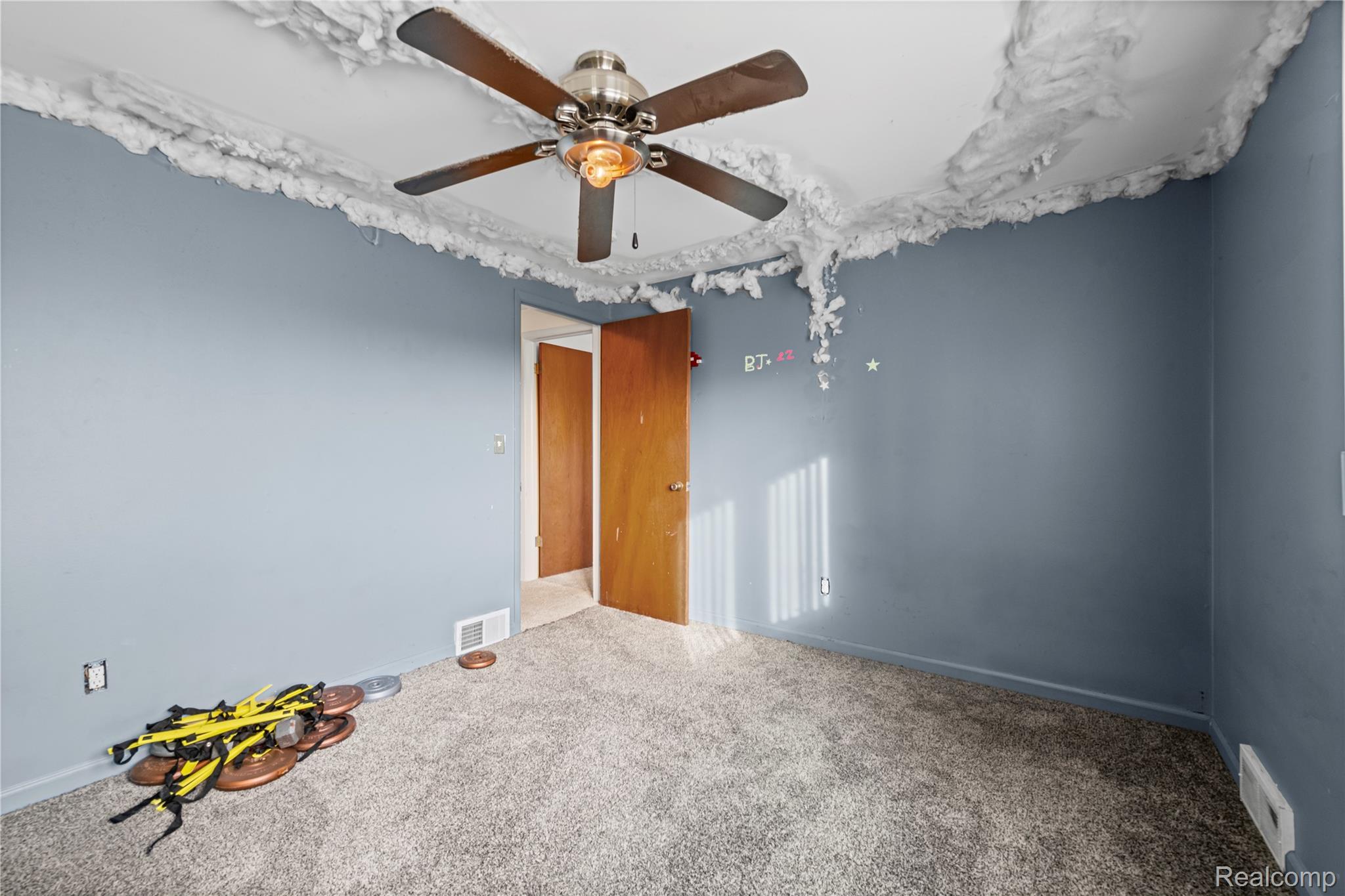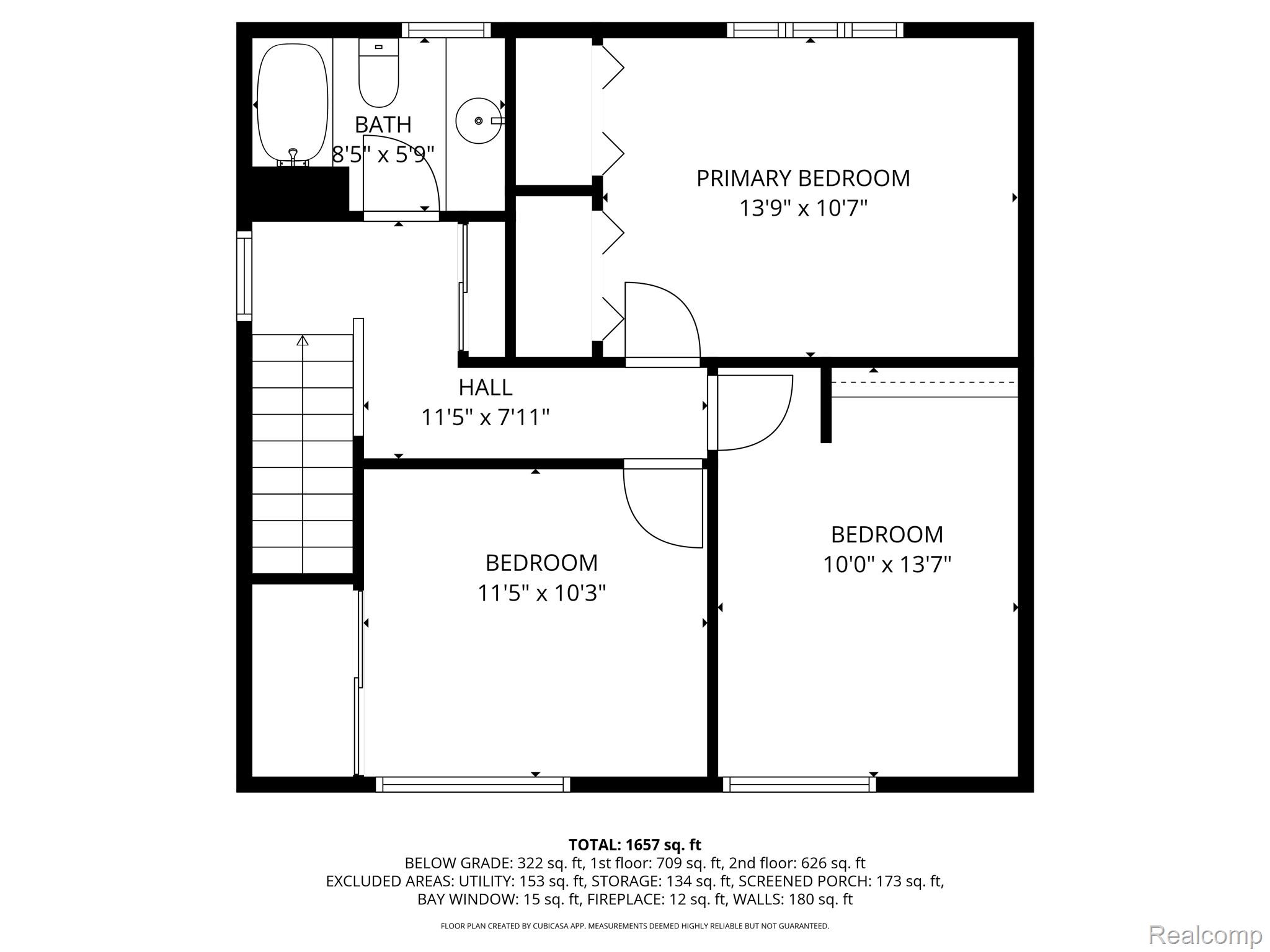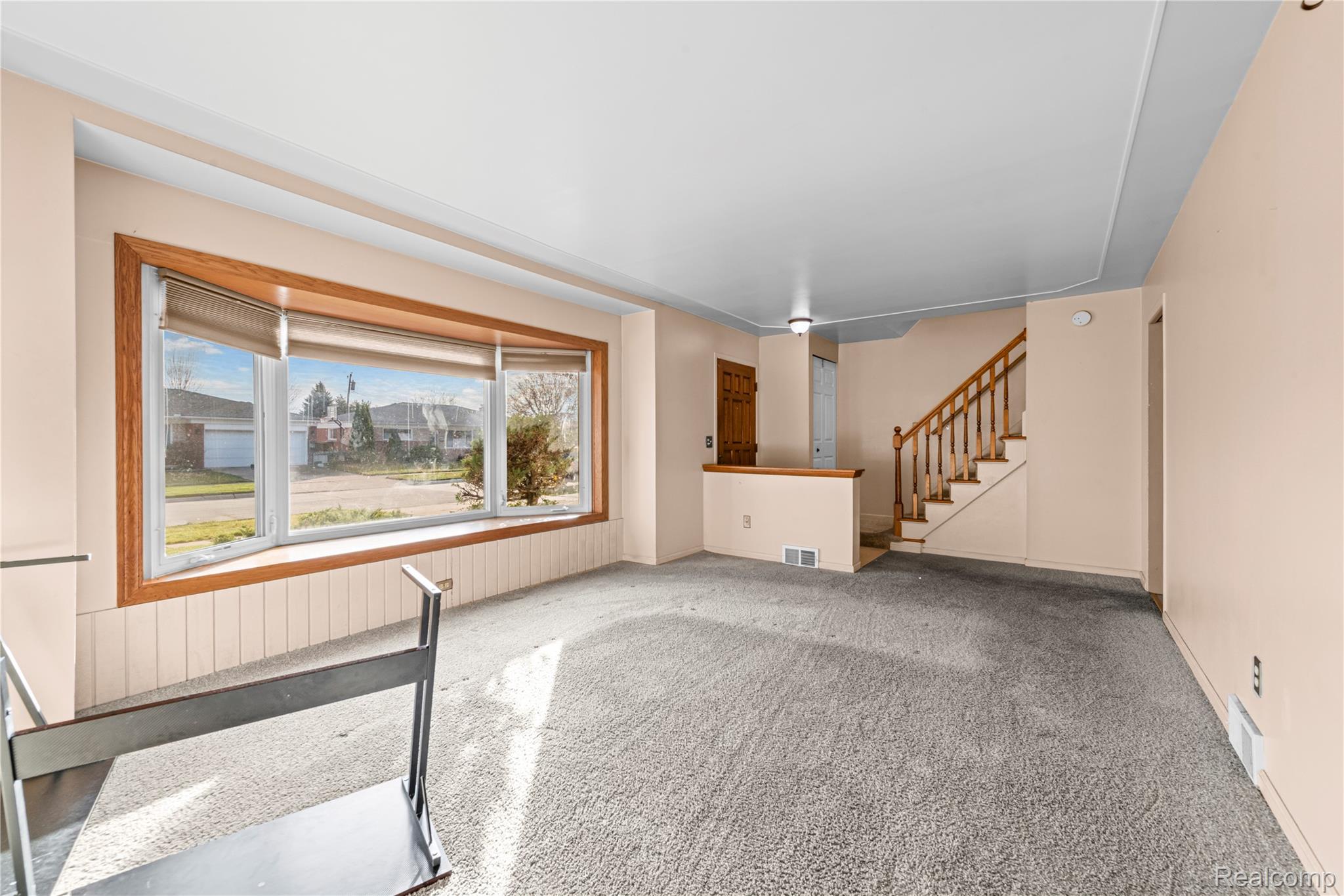 * Newer plush carpet upstairs, Living room with bay window and hardwood floors.